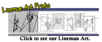 Home | Galleries | Lineman Art Prints | About the Artist | Commissions | Contact Me | Site Map | Links Copyright© 2005 Pennie Harris Studio. All rights reserved. All images are copyrighted and may not be reproduced in any form without permission from the Artist. |